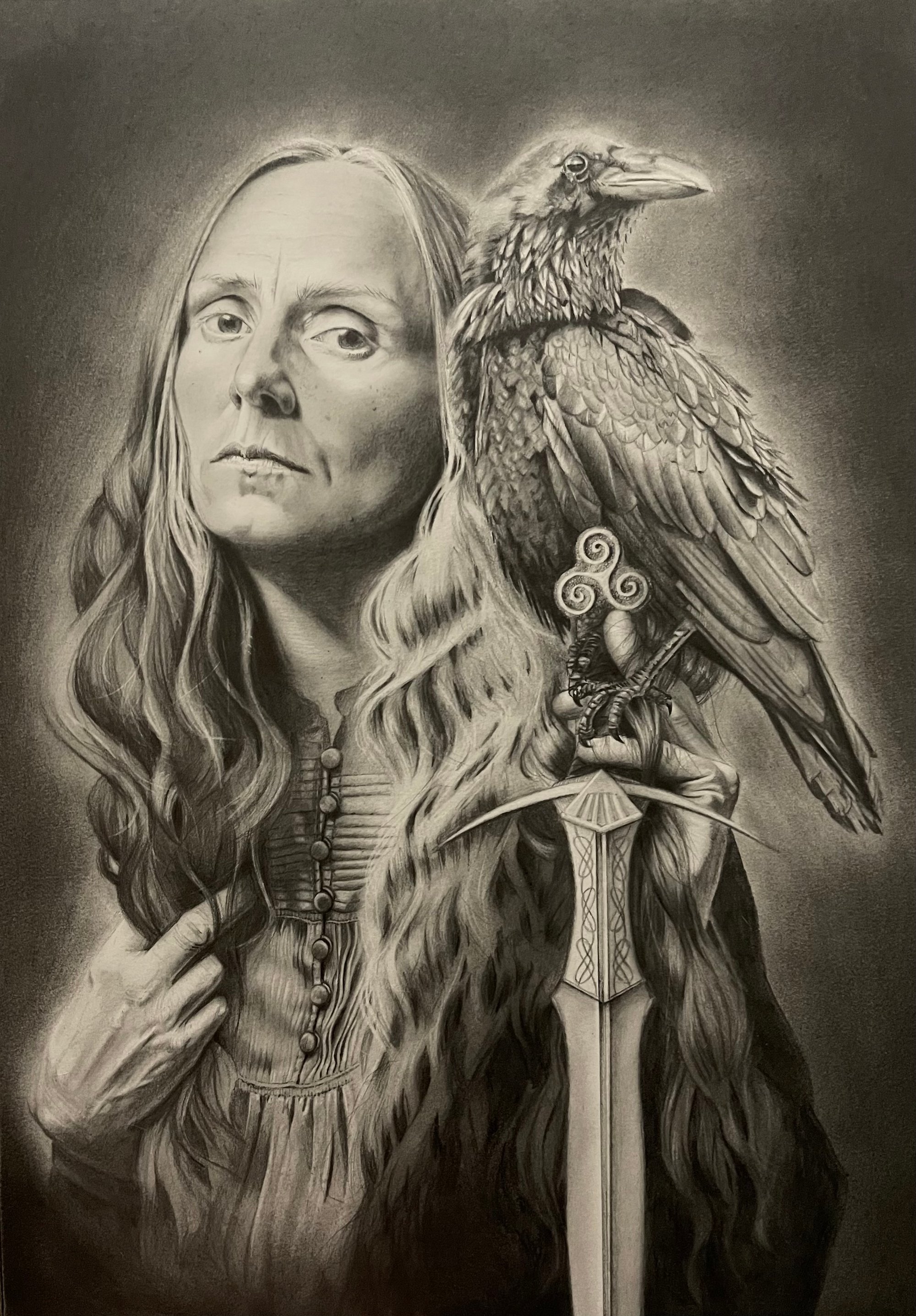 "Phantom Queen" The Morrigan is a goddess of war and fate, but also of sovereignty and prophecy, who appears at the cusp of great change. She is also associated with the land and animals, and has been known to be a manifestation of an earth goddess, guardian of the territory and its people. She may be called upon to provide political or military aid, particularly when defending sovereignty and right relations to the land. Her sword slices away what is old and dead, revealing what has always been eternal and true underneath.